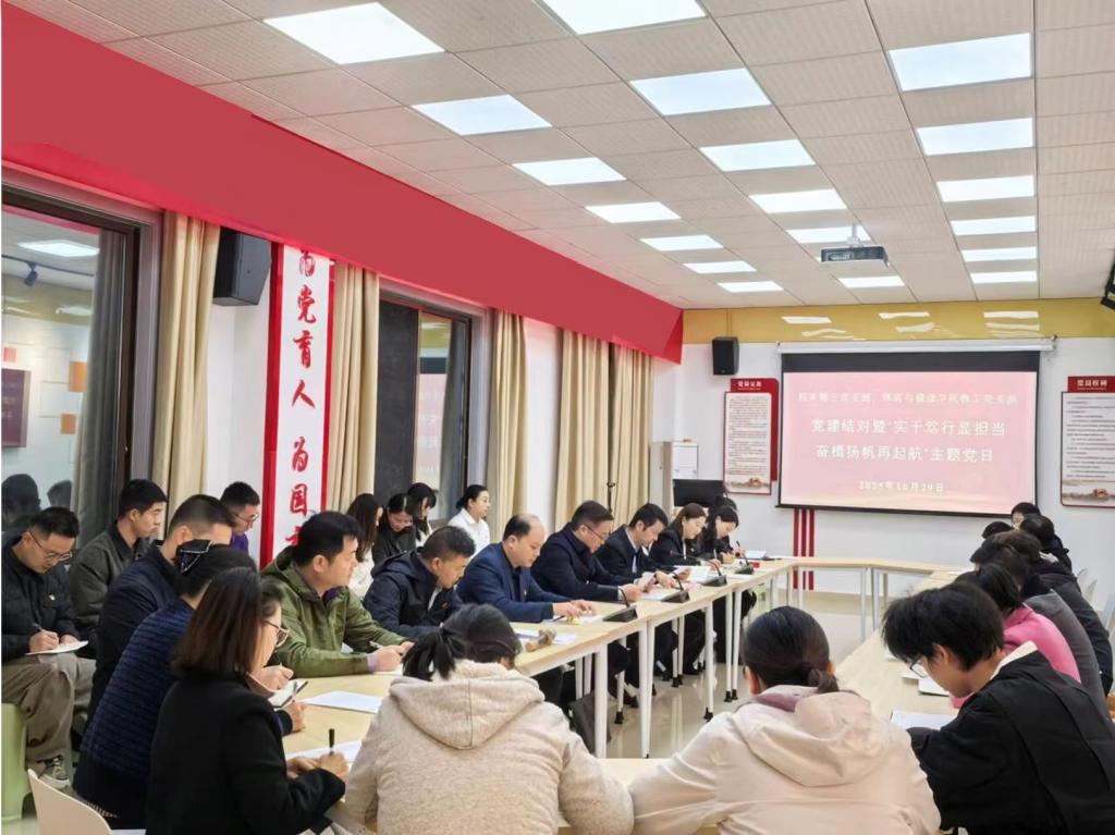 10月29日,机关第三党支部与体育与健康学院教工党支部在人文楼党员活动室开展“实干笃行显担当 奋楫扬帆再起航”主题党日暨党建结对活动。