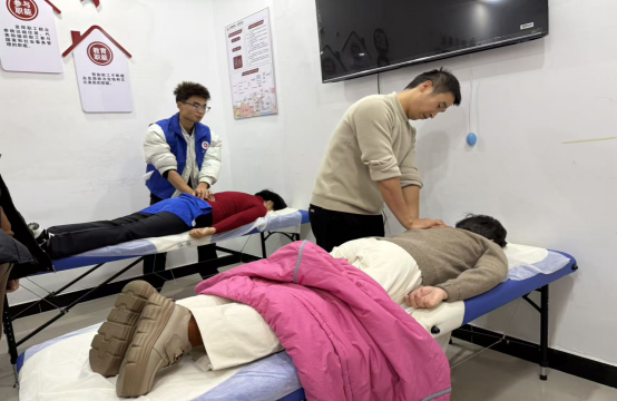 依托专业技能知识储备,学院运动康复团队在现场开设了康复治疗服务区,聚焦颈肩腰腿痛、肌肉僵硬等常见慢性不适,为居民提供免费按摩治疗。团队先细致询问居民身体状况,根据个体需求调整推拿力度与方式,运用娴熟的手法疏通经络、放松肌肉,并同步讲解日常保健技巧与居家按摩穴位,如按摩太阳穴缓解头痛、按压足三里强身健体等,此次服务有效缓解了居民的慢性疼痛,拓展了居家康复治疗的途径,让专业医疗关怀触手可及。